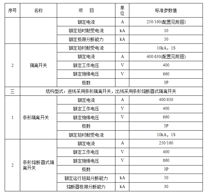 2.3.11在運用中能夠交換的具有同樣額定值和結(jié)構(gòu)的組件,應具有交換性。3標準技術(shù)參數(shù)技術(shù)參數(shù)特性表是對收買設備的基礎(chǔ)技術(shù)參數(shù)要求,供貨方應對技術(shù)參數(shù)特性表中標準參數(shù)值進行呼應。低壓電纜分支箱技術(shù)參數(shù)特性見表3