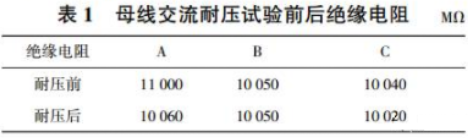 從耐壓試驗過程和表1絕緣電阻數(shù)據(jù)來看,該35kV 充氣柜母線耐壓試驗合格。