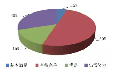 針對現(xiàn)有產(chǎn)品是否已經(jīng)滿意行業(yè)開展需要,以為根本滿意的占比5%;有待完善的占比50%;滿意的占比15%;仍需努力占比30%。如圖6所示。