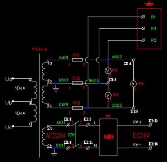 一、充氣柜帶電顯現(xiàn)器回路