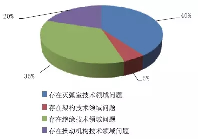 經(jīng)過對固體絕緣環(huán)網(wǎng)柜中心技術(shù)問題的了解,認(rèn)為存在滅弧室技術(shù)領(lǐng)域問題的占比40%;認(rèn)為存在架構(gòu)技術(shù)領(lǐng)域問題的占比5%;認(rèn)為存在絕緣技術(shù)領(lǐng)域問題的占比35%;認(rèn)為存在操動安排技術(shù)領(lǐng)域問題的占比20%。如圖9所示。