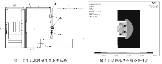 高壓帶電體對(duì)地最小空位處在支撐絕緣子上,經(jīng)過(guò)核算支撐絕緣子的電場(chǎng)如圖2,滿(mǎn)足電場(chǎng)請(qǐng)求,終究招認(rèn)對(duì)地最小空位。根據(jù)最小空位準(zhǔn)繩招認(rèn)氣箱外形標(biāo)準(zhǔn)(L1xW1xH1)。
