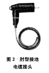 終端頭、雙通套管、帶電指示器和不銹鋼箱組成,采用構(gòu)造緊湊的全封鎖規(guī)劃,電纜徹底處于全密封狀態(tài),須先撤除電纜封帽、堵蓋顯露金屬雙頭螺桿才干驗電。以往拆電纜頭前都未驗電,而僅經(jīng)過察看帶電顯現(xiàn)器來判別電纜能否帶電(規(guī)程L1中未明文規(guī)則),若帶電顯現(xiàn)器發(fā)作缺點而又無其它平安維護措施,則會危及檢修人員的平安。雖然國內(nèi)多個廠家針對電纜分支箱、箱式變及環(huán)網(wǎng)開關(guān)柜制造的肘型接地電纜接頭(見圖2)可用來結(jié)束最后的接地作業(yè),但無法做到之前電纜頭撤除作業(yè)的平安維護,也就無法結(jié)束完好的技術(shù)措施。而本文研發(fā)的電纜分支箱驗電接地工具(見圖3)就圓滿處理了該問題,可結(jié)束電纜分支箱停電作業(yè)時有必要施行的一系列平安技術(shù)措施,確保檢修人員的人身平安。