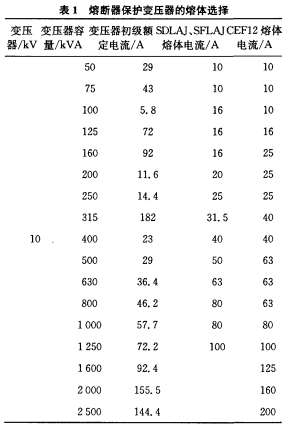 根據(jù)1989年世界配電網(wǎng)會(huì)議提供的材料,當(dāng)油浸變壓器內(nèi)產(chǎn)生短路毛病時(shí),短路電弧會(huì)使油氣形成氣泡而占據(jù)原先歸于油的空間,油將壓力傳給變壓器外璧,跟著短路的繼續(xù)而壓力愈來(lái)愈大,直到油箱迸裂。要使油箱不被迸裂,必須在20ms內(nèi)切除毛病。斷路器的動(dòng)作時(shí)刻是維護(hù)動(dòng)作時(shí)刻和斷路器固有動(dòng)作時(shí)刻兩部分之和,其值不小于60ms,可見(jiàn)斷路器不能達(dá)到維護(hù)油浸變壓器的意圖。負(fù)荷開(kāi)關(guān)+熔斷器環(huán)網(wǎng)柜則能夠有效地維護(hù)變壓器,熔斷器維護(hù)變壓器的熔體挑選表1。