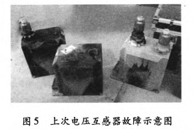 2011年3月30日0:38,35kV垣潔線、35kV垣宏回A、B相電壓互感器擊穿,如圖5所示;2012年3月26日19:7:58,35kV垣潔線56號線路電壓互感器A、B、C相損壞,A、B相有炸裂現(xiàn)象。