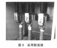 (2)穿墻套管下部與電纜銅搭子導體部分聯接選用軟聯接過渡,如圖9所示,能夠去除硬聯接產生的應力,一同消除電纜通電后產生的電動力,隔絕了對穿墻套管的應力效果。